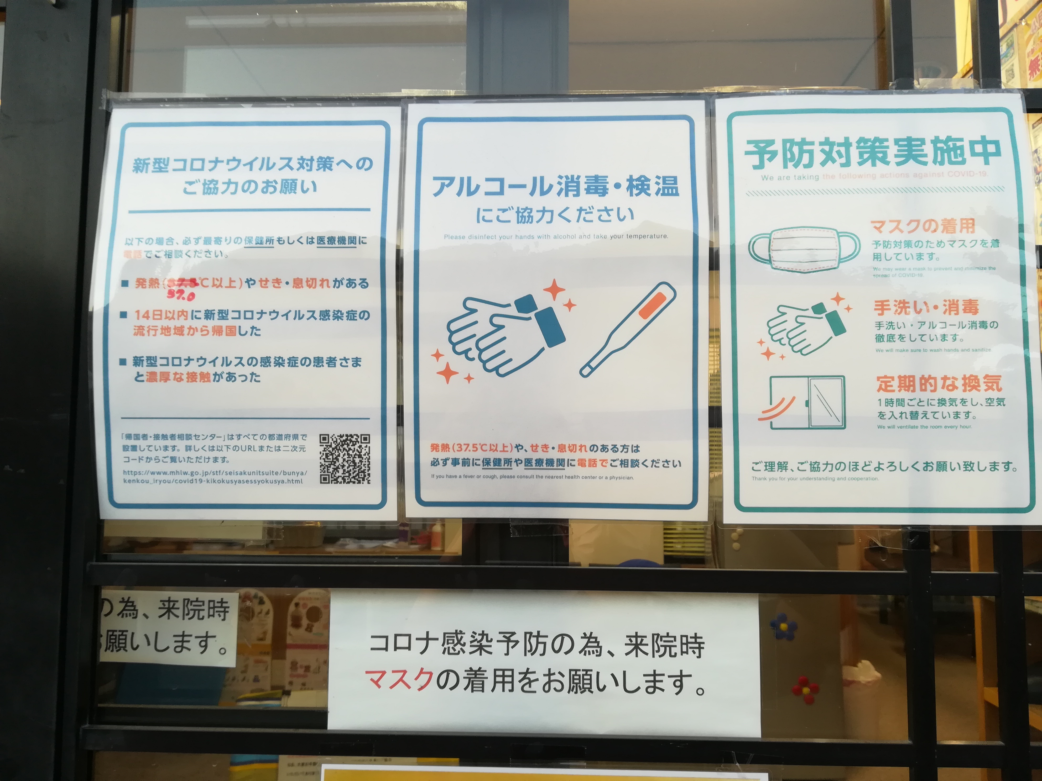 ③ 来院時に非接触型の体温計で検温・手指の消毒